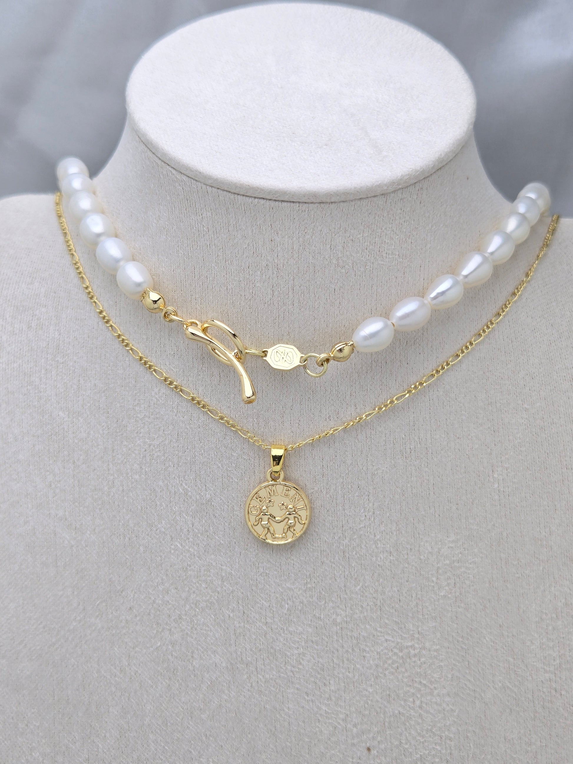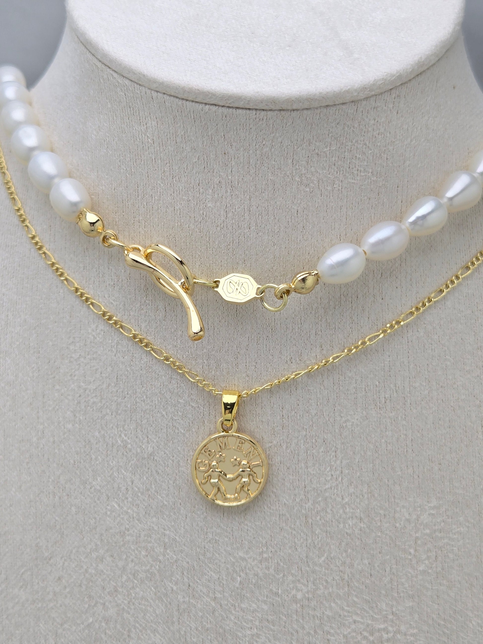 This exquisite necklace features lustrous rice pearls, each with a sleek, elongated shape that exudes timeless elegance. Secured with a sophisticated 14K gold-plated O-toggle buckle, this piece offers both a refined aesthetic and a touch of modern flair. Perfect for adding a subtle yet stylish statement to any outfit, this versatile necklace effortlessly transitions from casual to formal occasions, making it a must-have accessory for your jewelry collection.