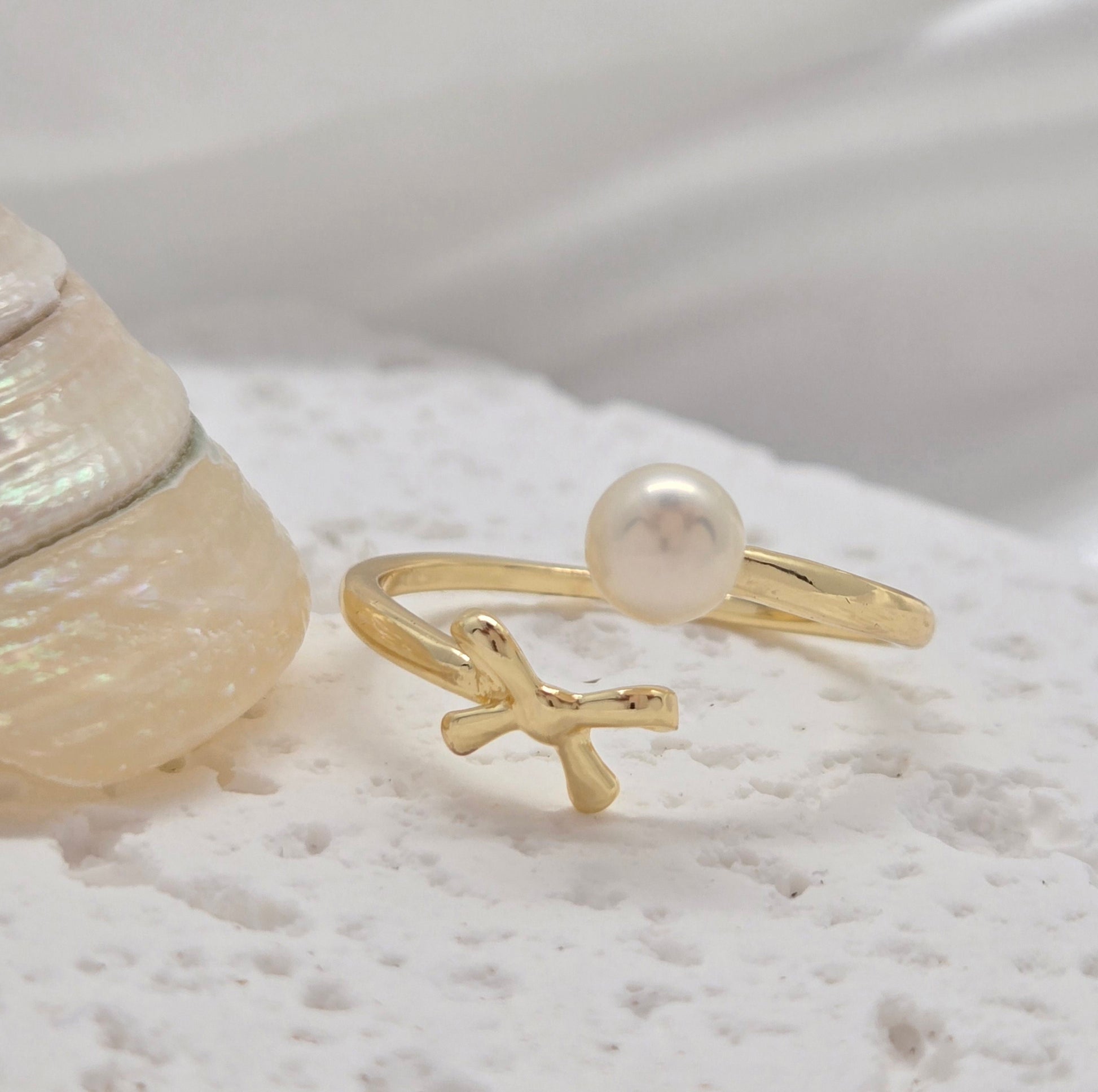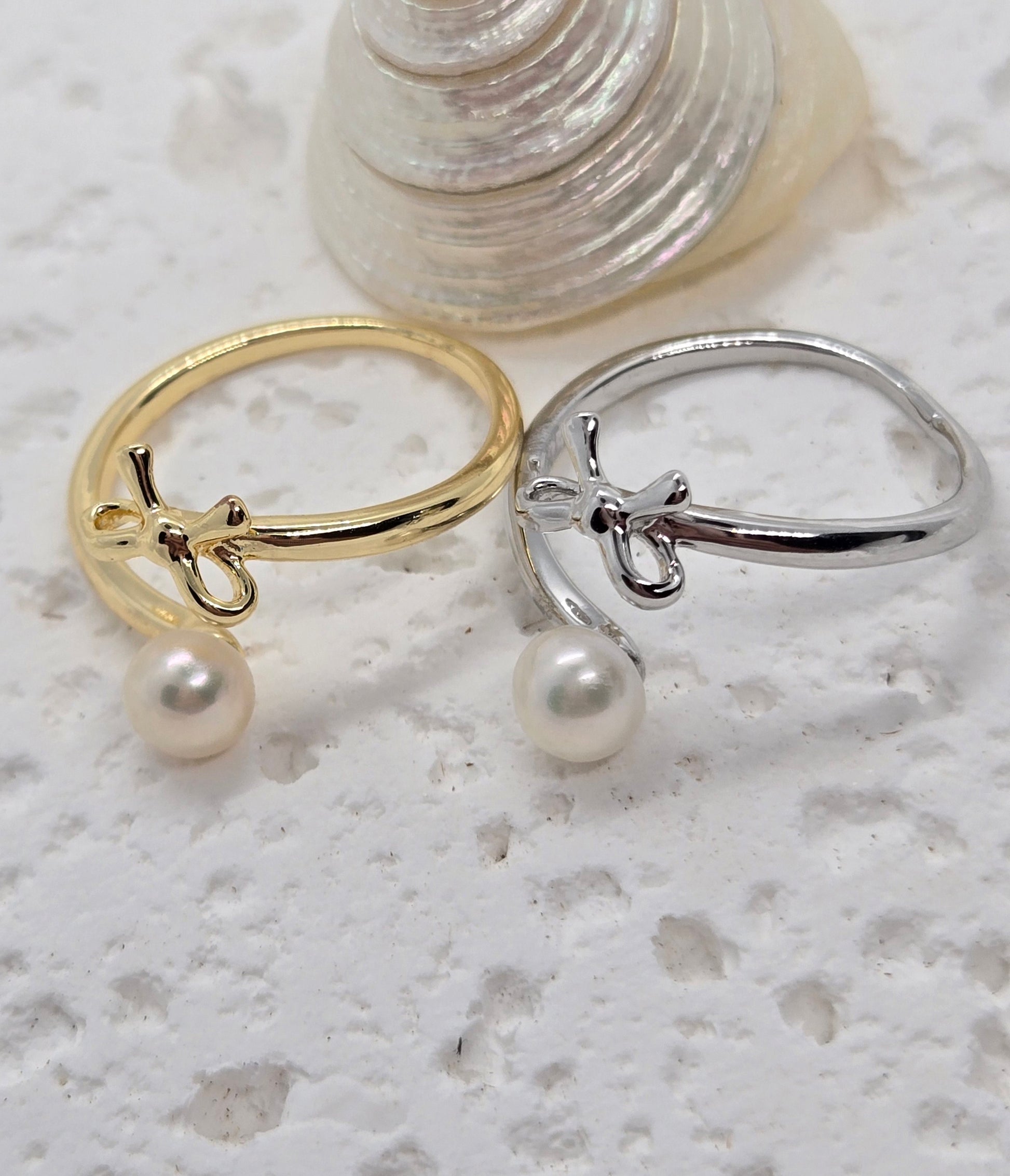 Elegant and playful, this Pearl on Ribbon Ring features a genuine natural pearl set on a ribbon-inspired band. Available in silver and 14k gold tones, it’s crafted for a chic yet affordable addition to your jewelry collection